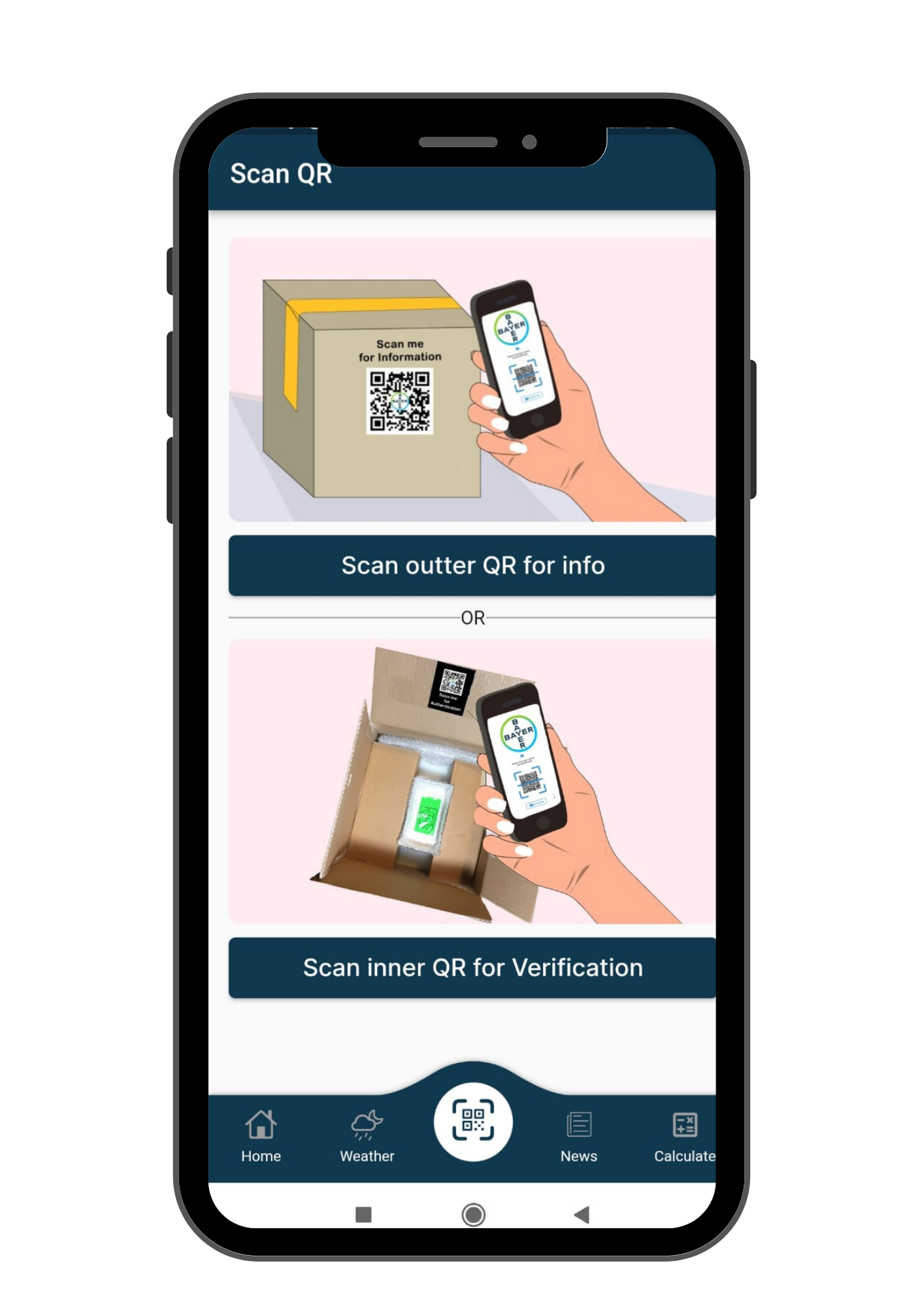 So inside every bayer’s product there is one unique QR code is printed which is only valid for one scan after scanning it once it will automatically move to already scanned database so that if anyone create fake QR codes then it will be of no USE.